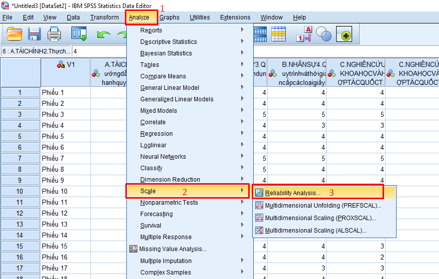 Để thực hiện kiểm định độ tin cậy của các phiếu lấy ý kiến qua thang đo Cronbach’s Alpha trong SPSS 26, vui lòng thực hiện theo các bước sau: