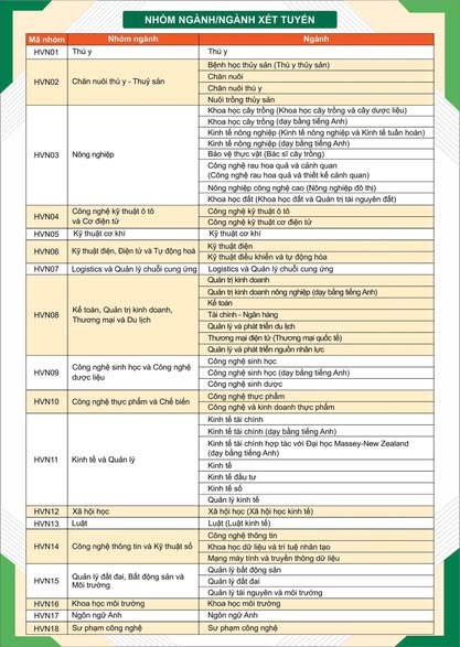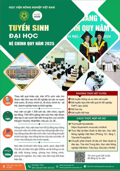 Năm 2025, Học viện Nông nghiệp Việt Nam tuyển sinh: